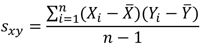 其中rxy表示样本相关系数,Sxy表示样本协方差,Sx表示X的样本标准差,Sy表示y的样本标准差。下面分别是Sxy协方差和Sx和Sy标准差的计算公式。由于是样本协方差和样本标准差,因此分母使用的是n-1。