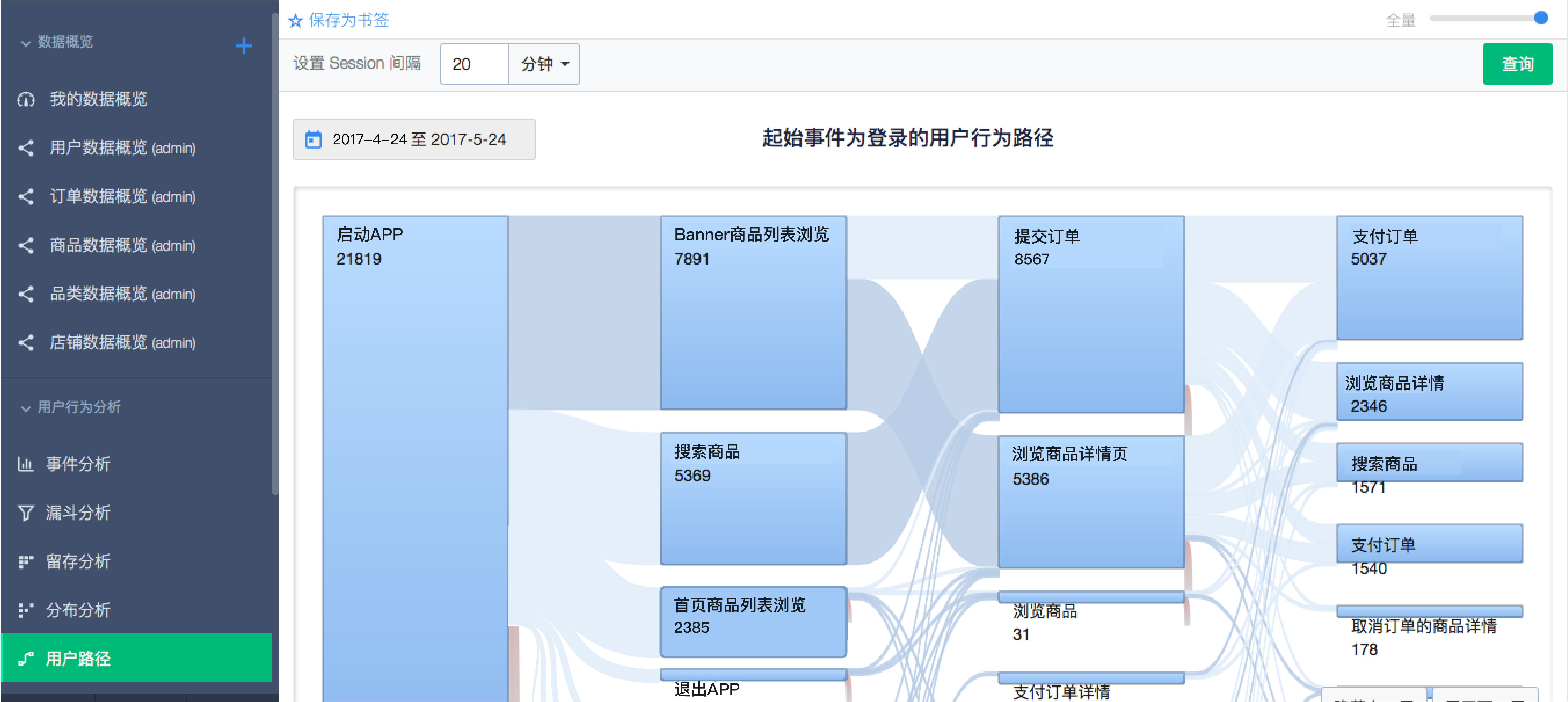 **第一,可视化用户流,**全面了解用户整体行为路径;