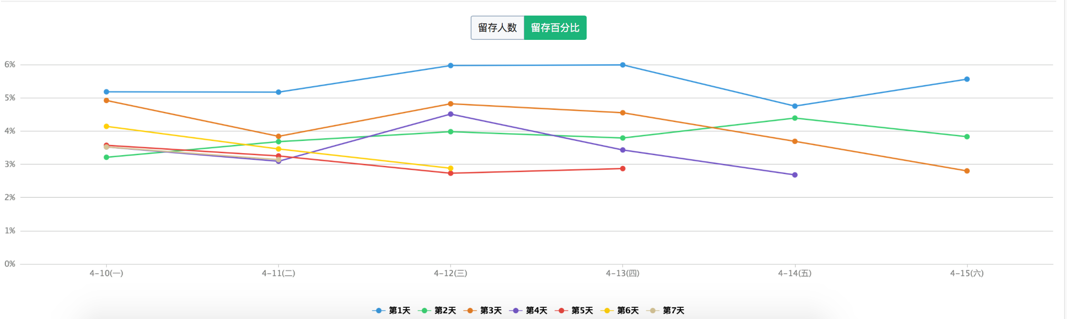 图 2 新用户群体七天留存趋势变化(图片来源:神策数据产品)