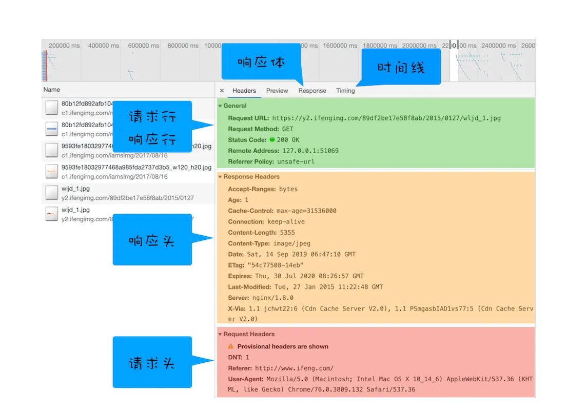 了解了每个资源的详细请求信息之后,我们再来分析单个资源请求时间线,这就涉及具体的 HTTP 请求流程了。