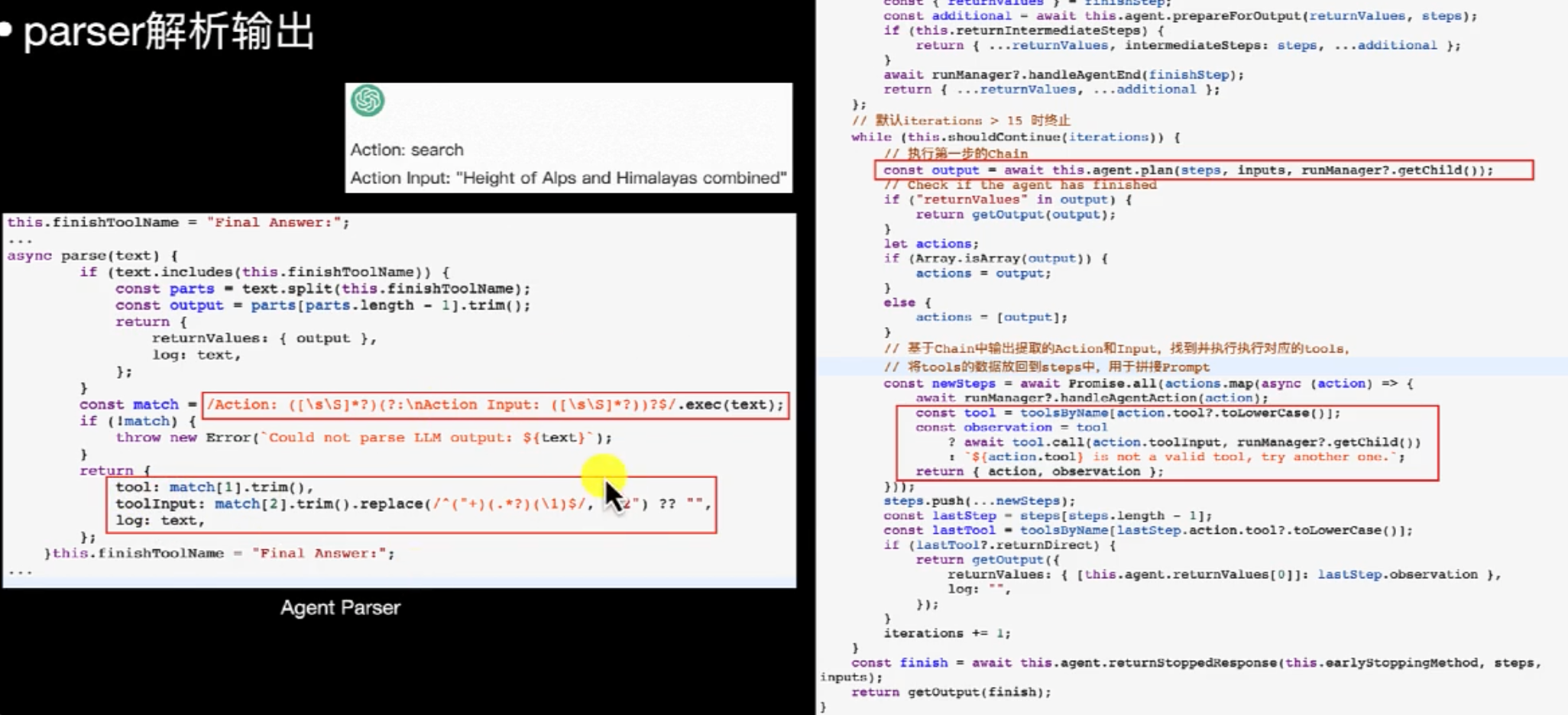 parser主要解析中间过程大模型输出的action对应的输入,用来执行工具;